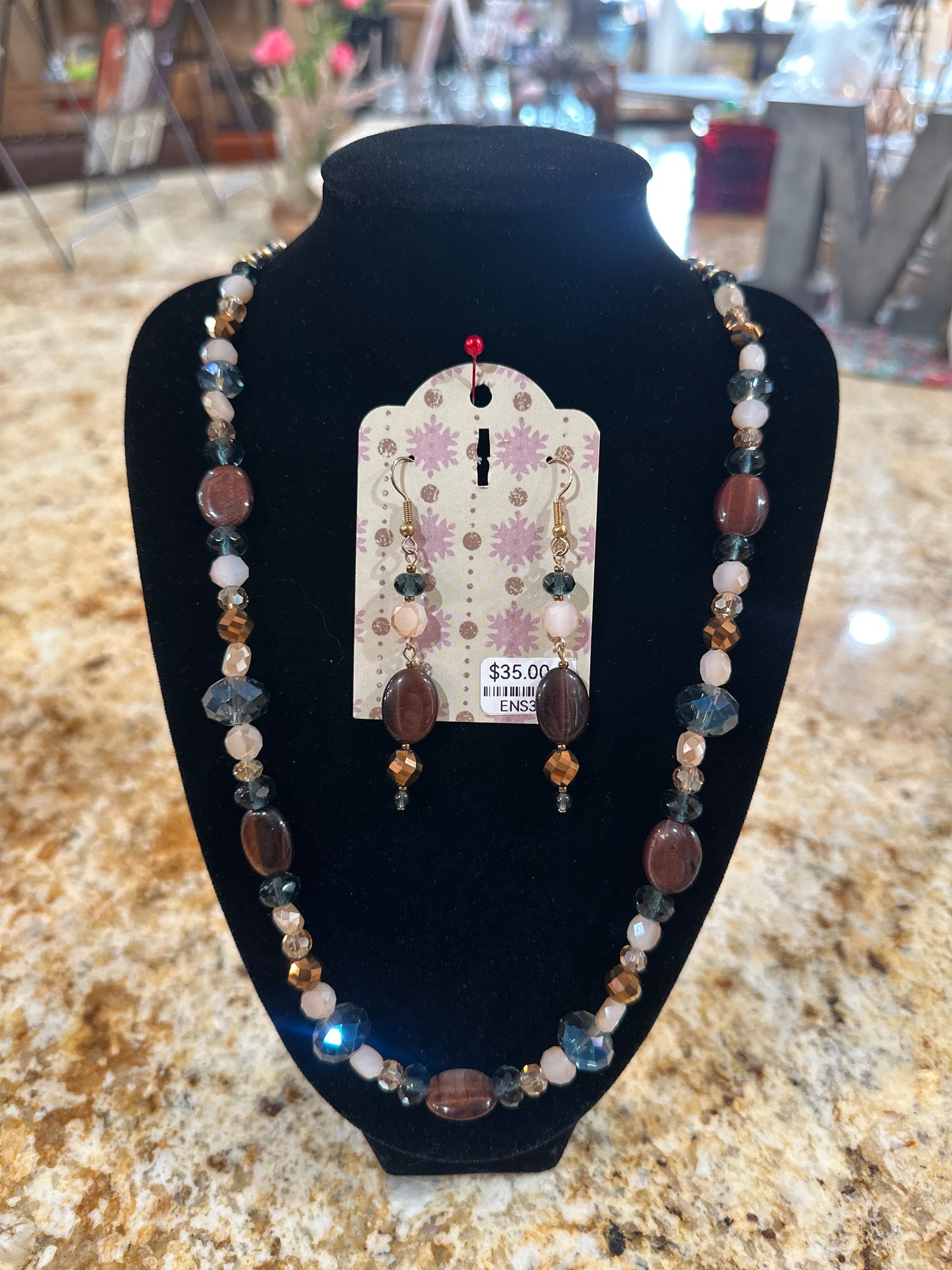 Each of our necklace and earring sets is thoughtfully handcrafted and one-of-a-kind—no...
